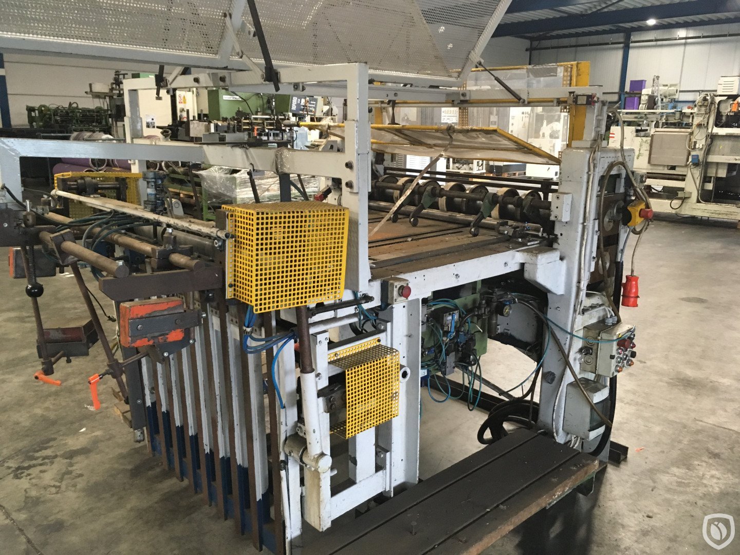 Quality used single gang slitting machine with feeding table. On the shaft are 6 pair of cutters.