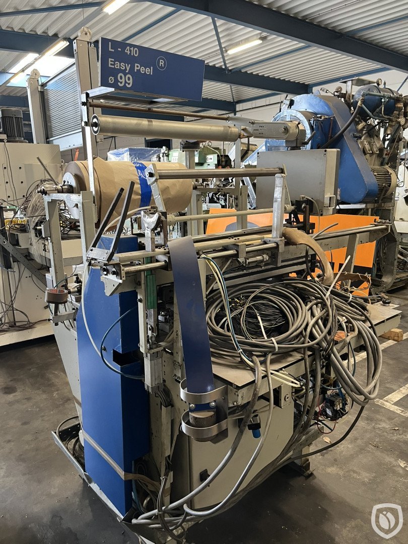 Pre-owned machine for automatically wrapping Ø 99 Easy Peel Ends in paper sleeves with roll-ends.